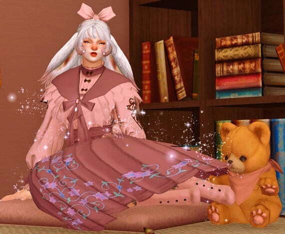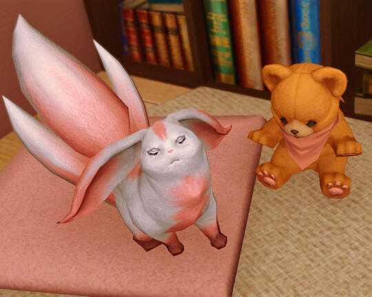 Honey is a timeless, gentle spirit, summoned by the soul's longing for companionship. Over countless years, she has gathered Aether from each bond she’s formed, absorbing the essence of those she’s protected once they’ve passed. Currently, she quietly guards Emiko.The bright shimmer of light around her and Emiko are fragments of Aether, woven with memories of all her past lives and relationships. Using small doses of Aether to soften life’s little pains—like cushioning a fall or easing a bump. Her love for Emiko is deep, and all she wants is for her to feel safe and comfortable.Honey spends much of her time at her mistresses free company, often sneaking a book or two from the library. During Emiko's working hours Honey can be found in her favorite spot by the bookcase on a soft pink pillow.